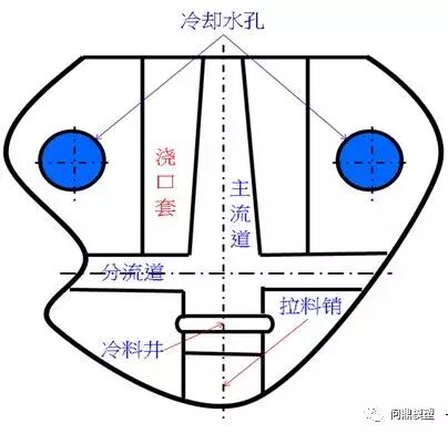 冷却时间与塑胶最大厚度(或直径)的平方成正比,主流道的根部是塑胶最粗厚的部分,如果不打薄,其中的热量不易散出,冷却时间就难以缩短。